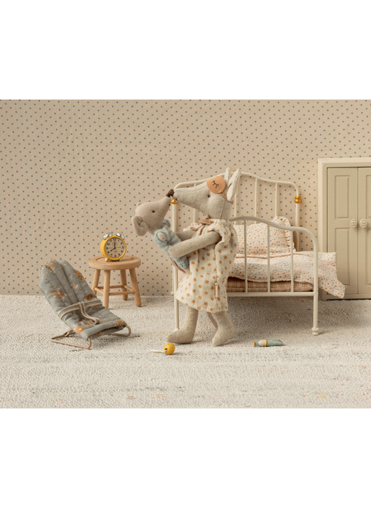 With this babysitter, it is easy to put your little friends to sleep. The base is made of metal and covered by the most lovely fabric. The chair fits my sized rabbits/bunnies and baby mice perfectly.