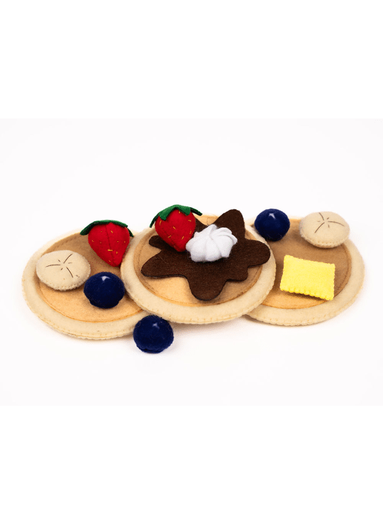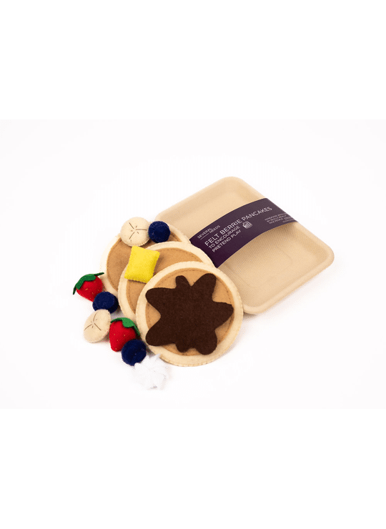 Maak het spelen nóg zoeter met onze vilten pannenkoekjes met besjes en banaan! 🍓🍌 Perfect voor kleine chef-koks die de lekkerste desserts willen serveren. Geen smijt gevaar, geen plakkerige vingers—gewoon eindeloos speelplezier. En wordt het toch vuil? Smijt het in de wasmachine en begin opnieuw! 🥞✨