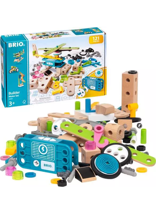 Breng je BRIO Builder creaties tot leven met de BRIO Builder Motorset: het perfecte bouwspeelgoed om de fantasie van toekomstige bouwkundig ingenieurs te prikkelen. De speelgoedset bestaat uit 120 onderdelen, een functionerende motor op batterijen en eenvoudige gereedschappen om je creaties te bouwen. De motor kan vooruit, stoppen en achteruit, dus laat je creativiteit de vrije loop en bewonder de bewegingen van je nieuwe creatie.