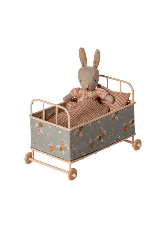 A cosy cot bed made of metal, it comes with a mattress, blanket, and pillow. It has a fabric cover to make sure the little ones can get their sleep. You can tuck in your micro sized friends as well as the small mice.