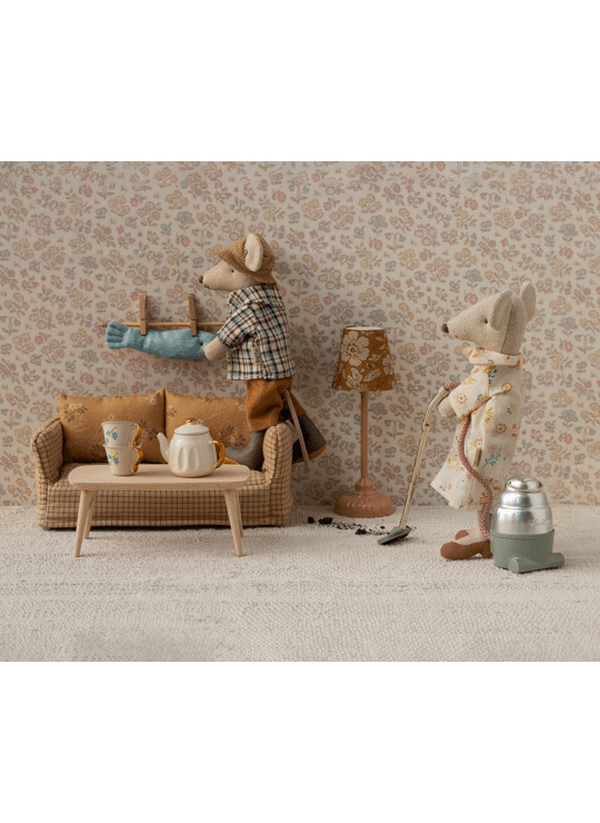 All families needs a soft couch to rest in. The mice family can all sit tight in this and have a cosy time, it fits perfectly to the living room in the Mouse hole Farmhouse. Add the wooden coffee table to fulfil your home decoration.