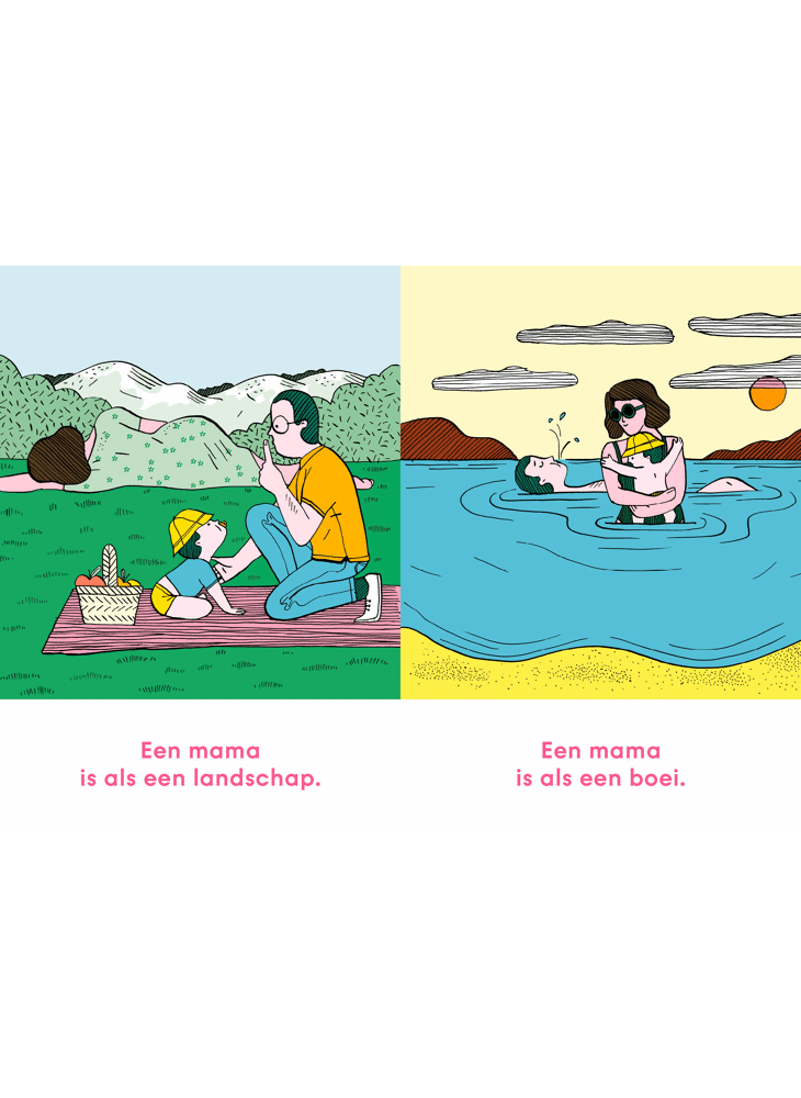 De allereerste persoon die je leert kennen op de wereld is je moeder. Je groeit in haar buik, warm en knus. Ook wanneer het tijd is om die buik te verlaten, omringt ze je met liefde. Ze wikkelt je in een deken en draagt je als een kangoeroe. Ze laat je drijven op het water zoals een boei. Ze knuffelt je zacht, ze voedt je en wast je, kust je en wiegt je. En wanneer je groter wordt, toont ze je de wereld en gaat ze samen met je op ontdekking. Zelfs wanneer de wereld te groot en te eng lijkt, is zij er om je tranen te drogen.