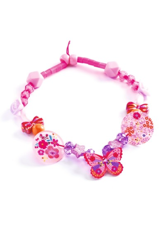 Een doos met 285 acrylkralen en 6 vlinder-hangers om mooie sieraden te maken. Een goed doordacht kleurenschema voor een harmonieus resultaat. De kinderen rijgen de kralen aan de draden om naar wens mooie halskettingen of armbanden te maken.