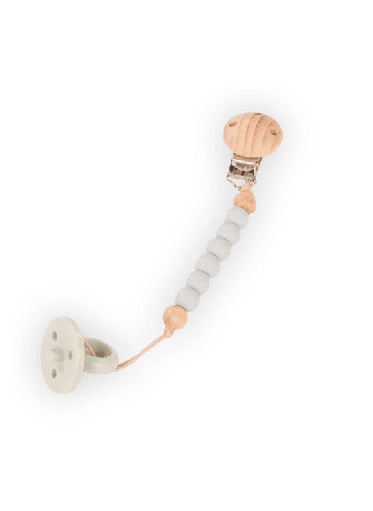 What an incredibly practical set, a stylish dummy chain for small baby dolls. The lovingly designed chain consists of wooden and rubber beads, and it is attached to the clothing so that the important accessory can't be lost anymore. The rubber dummy completes the set, making it a charming accessory for every doll mother. Ideal for realistic doll play.