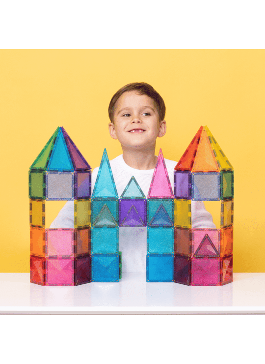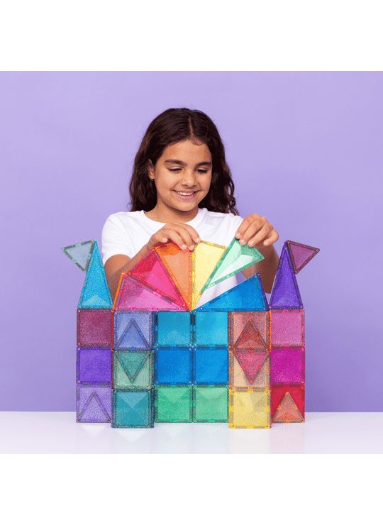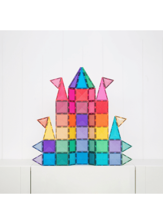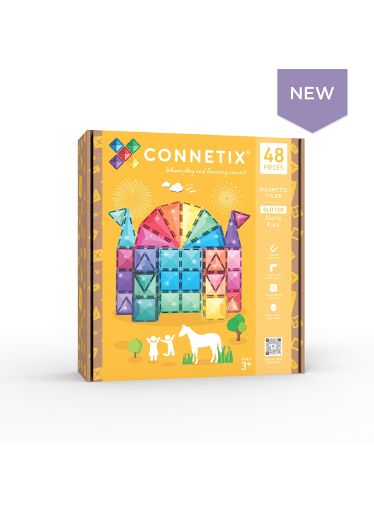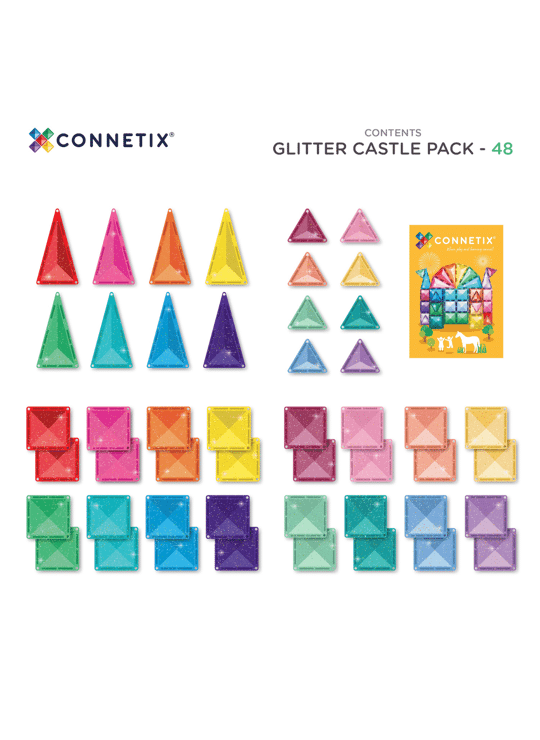Het 48-delige Glitter Castle Pack bevat kleurrijke, transparante magnetische tegels met glinsterende accenten. Kinderen kunnen hun eigen sprookjeskastelen, torens en magische bouwwerken maken. Dankzij de sterke magneten blijven de creaties stevig staan, terwijl fantasie en ruimtelijk inzicht volop worden gestimuleerd. Perfect te combineren met andere Connetix-sets voor nog grotere avonturen.