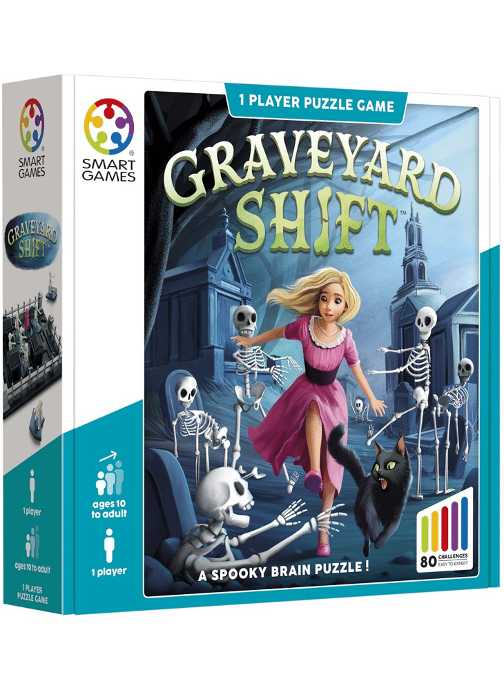 Zoek je kat na middernacht, maar pas op… de skeletten zijn wakker! Kun jij een pad vinden naar de uitgang voordat ze je te pakken krijgen?
