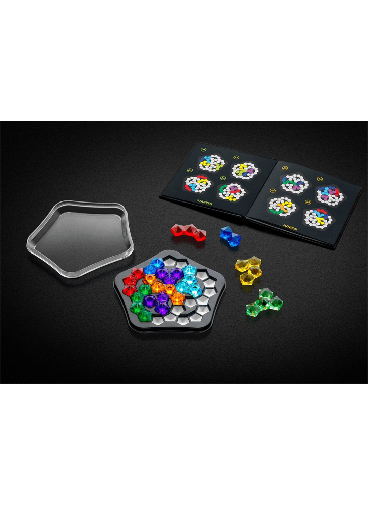 Dit denkspel voor volwassenen is een waar juweel. Met 120 opdrachten in een luxe boekje en een hoogwaardige verpakking, verleidt het zelfs de meest veeleisende puzzelaar. Kan jij alle transparante puzzelstukken op het vijfhoekige spelbord passen?