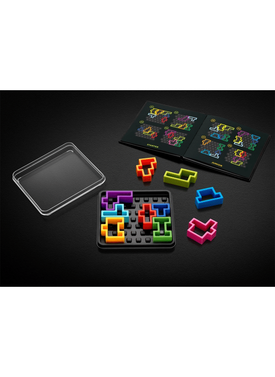 In de doos: vierkant spelbord met deksel, 10 “holle" puzzelstukken, boekje met 120 opdrachten en oplossingen, spelregels.