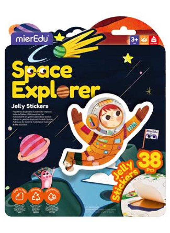Blast off naar squishy galactisch plezier! Dit pakket zoomt in met 38 herbruikbare, no-residu clings-denk gloeiende planeten, raketten, lachende astronauten, en wervelende sterrenstelsels! Plak deze zachte, rekbare stickers op ramen, lunchtrommels of koelkasten om maanlandingen, asteroïderaces of buitenaardse ontmoetingen te creëren. Ze zijn veilig, niet giftig en knoeien niet, waardoor kosmisch spelen een fluitje van een cent wordt. Prikkel nieuwsgierigheid naar de ruimte en stimuleer creativiteit en motoriek - ideaal om cadeau te geven, te versieren of om kleine fantasieën in een baan om de aarde te brengen!