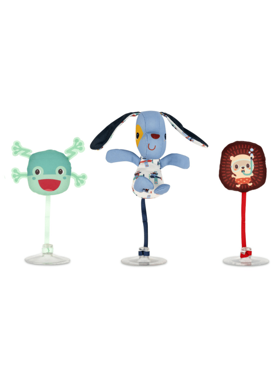 Jules de hond en zijn vrienden vinden het heerlijk om met de baby in bad te gaan! Dit badspeelgoed bestaat uit 3 karakters met zuignappen, praktisch en origineel. Ze zijn ideaal voor peuters vanaf 3 maanden en zelfs voor oudere kinderen. Ze meten 8 x 7,5 x 7 cm. Geen speelgoed meer dat met de golven in de badkuip van je kind wegbeweegt! Dankzij hun zuignappen zijn Jules de hond en zijn vrienden de egel en de kikker altijd binnen handbereik van de baby. Bevestig ze aan de muur of de bodem van de badkuip en kijk hoe ze dansen op het water! Het is perfect voor het ontwikkelen van het gezichtsvermogen en de motoriek van de kleintjes. Kleurrijk, met hun verschillende uitdrukkingen, kunnen deze badspellen ook onder de douche worden gebruikt. Jules doet de plank en laat zijn grote oren op het water drijven, terwijl de kikker duikt met zijn grappige pootjes en Léon de egel de diepte verkent met zijn snorkel. Gemaakt van polyester, drogen deze 3 badspeeltjes snel, wat echt praktisch en hygiënisch is! Wij raden u aan de karakters na elk gebruik te drogen en indien nodig in de machine op 30° te wassen. Laat je baby in zijn eigen tempo ontdekken wanneer het tijd is om te wassen, en je avondritueel wordt des te leuker. Met zijn eerste Lilliputiens badspeeltje spettert de baby graag! Het is ideaal als je het wilt afkoelen door plezier te hebben in het water op een warme dag. 1, 2, 3 ... Naar het bad, Jules!