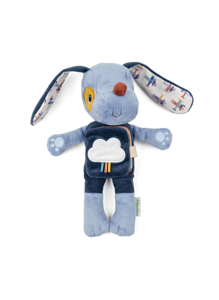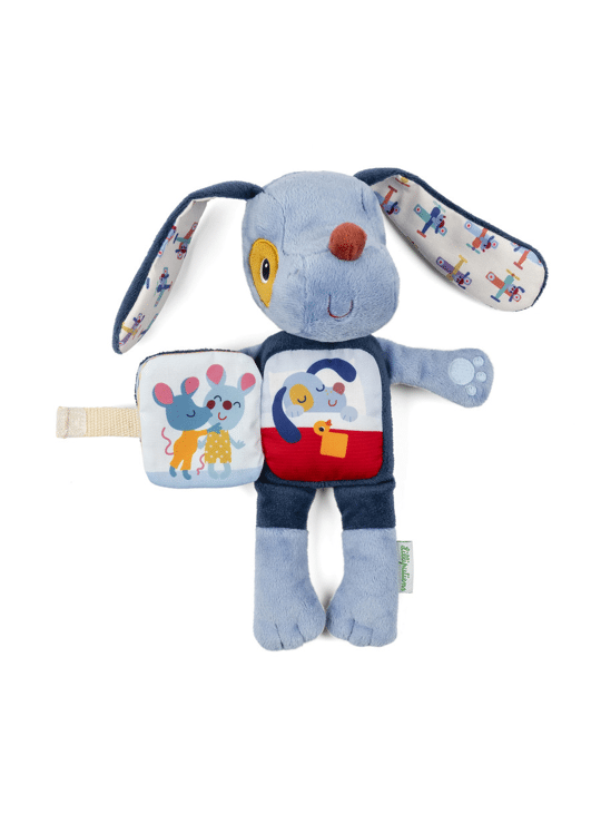 Klaar voor een verhaaltje voor het slapengaan, Jules? Deze knuffel van 26 cm is ideaal om je kleintje vanaf 6 maanden mee naar bed te nemen. Dankzij het ingebouwde stoffen prentenboek en de fosforescerende functie kent hond Jules alle bedtijdrituelen uit zijn hoofd. Het houdt uw kindje gezelschap en geeft zachtjes licht wanneer het licht uitgaat. De verrassing van deze Lilliputiens-knuffel is de wolk en de pootjes van Jules die oplichten in het donker: ja, het is een fosforescerende knuffel! Het is zachter dan een nachtlampje: het stimuleert de fantasie van uw kind overdag en stelt hem of haar 's nachts gerust. Dankzij de glanzende patronen is het onmogelijk om het knuffelhondje 's nachts kwijt te raken. Maar dat is nog niet alles! Jules' buikboekje vertelt een verhaal! Neem de tijd om het samen met het gezin te observeren en ontdek de avondrituelen van onze kleine Jules en zijn vriendjes. Pyjama aan, tandenpoetsen, dikke kus... De zachtheid, het vriendelijke gezichtje en de details van het knuffeldier maken het tot een echte vriend voor het slapengaan. Met zijn glinsterende patronen en kleine geborduurde label is hij er altijd voor verhaaltjes voor het slapengaan en dikke knuffels tijdens het dutje. Het knuffeldier is 18,5 x 10,5 x 26 cm groot, gemaakt van polyester en katoen en is machinewasbaar op 30°. Slaap lekker met deze zachte, knuffelbare verhalenverteller!