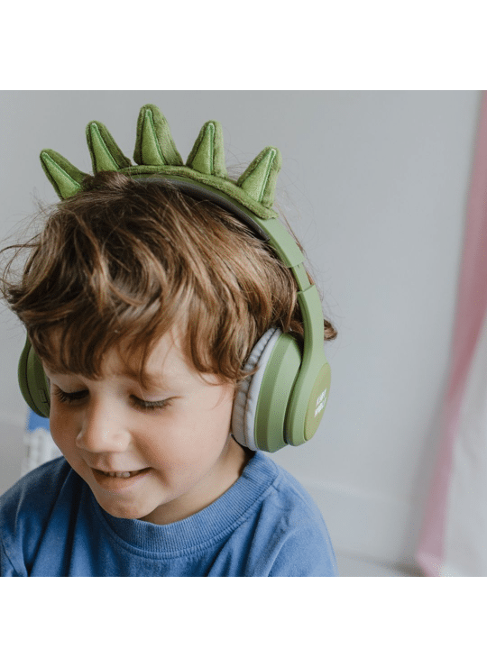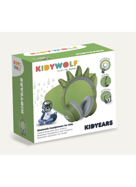 KIDYEARS is de onmisbare hoofdtelefoon voor kleine fans van dinosaurussen! Met zijn leuk ontwerp en magnetische oortjes biedt hij een helder geluid en beschermt hij het gehoor dankzij een volume dat beperkt is tot 85 dB. Hij is licht, comfortabel en hybride (bedraad of Bluetooth) en begeleidt kinderen bij al hun activiteiten: spelletjes, films, muziek of gewoon onderweg.