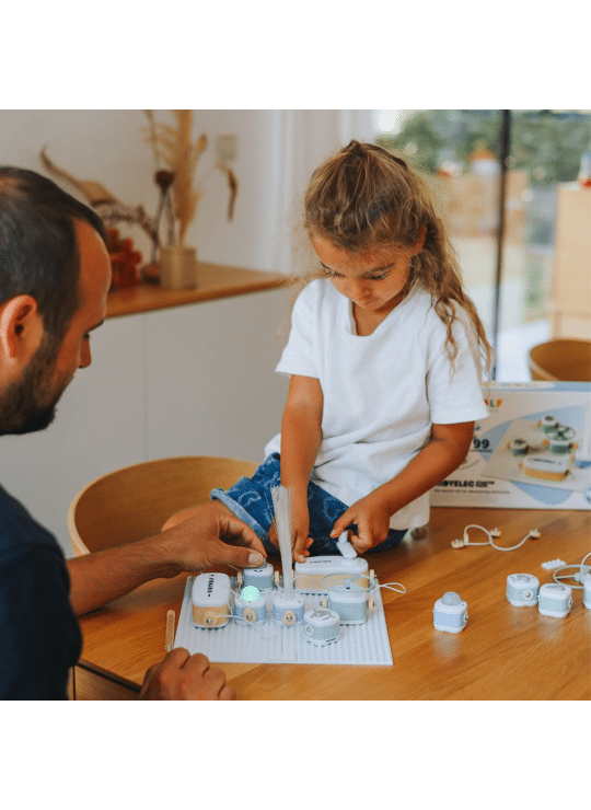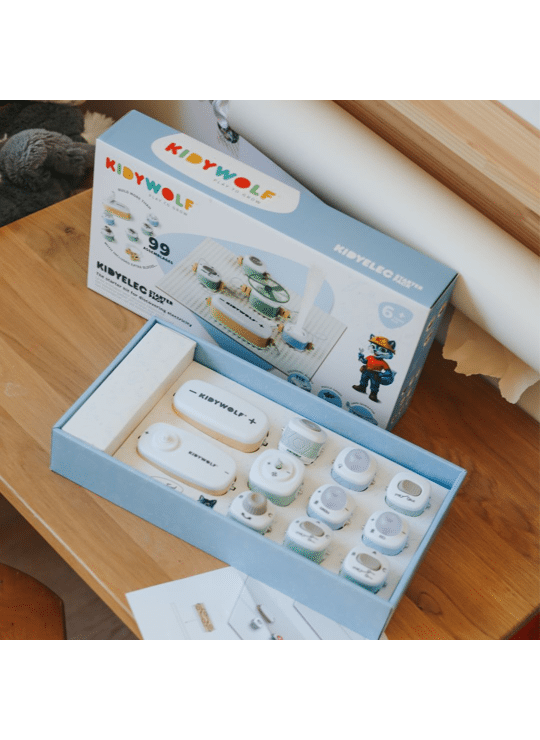 Wat als elektriciteit kinderspel zou worden? Met KIDYELEC ontdekken ze de fascinerende wereld van elektrische circuits door zelf hun eerste montages te bouwen. Ze aansluiten, testen, experimenteren... Deze slimme set is ontworpen om de nieuwsgierigheid te prikkelen en interesse in wetenschap te wekken, en maakt van elke handeling een kleine overwinning. Een eerste concrete en speelse verkenning, waarbij je leert door te zetten — en vooral ook plezier te hebben.