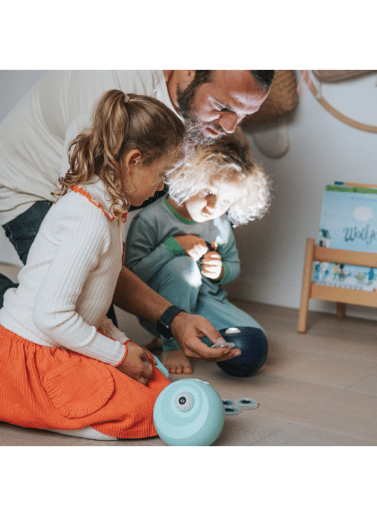 Breng magie in de slaapkamer van uw kind met KIDYSTAR! Deze sprookjesachtige projector tovert de muren en het plafond om tot een betoverend lichtspektakel dankzij de 6 verwisselbare schijven. Met het geïllustreerde educatieve boekje wekt hij de nieuwsgierigheid en brengt hij rust bij het slapengaan. Een uitnodiging tot kalmte, dromen en ontdekken... voor zachte nachten.