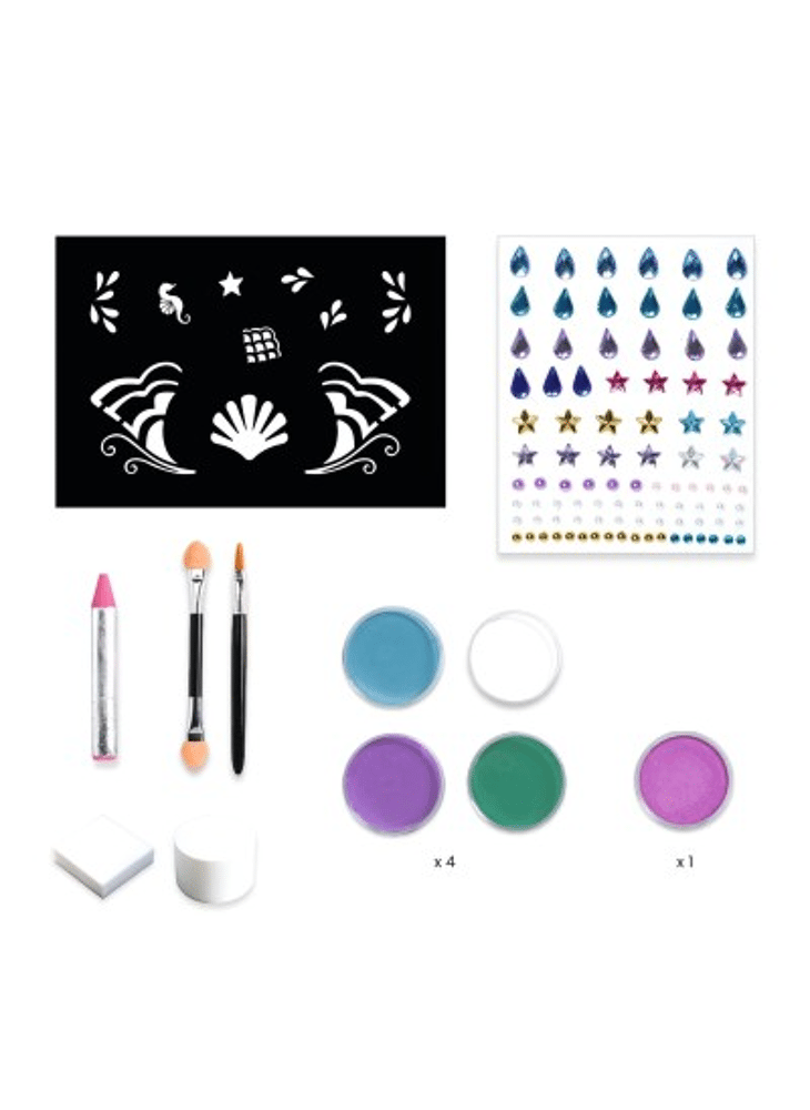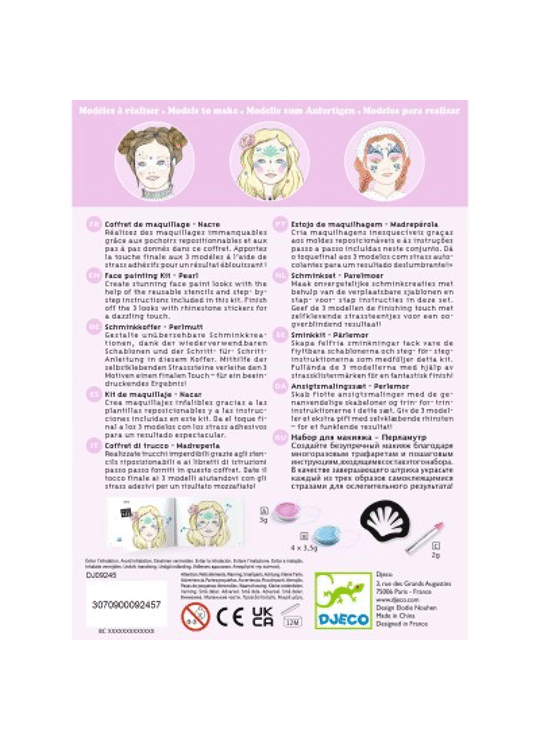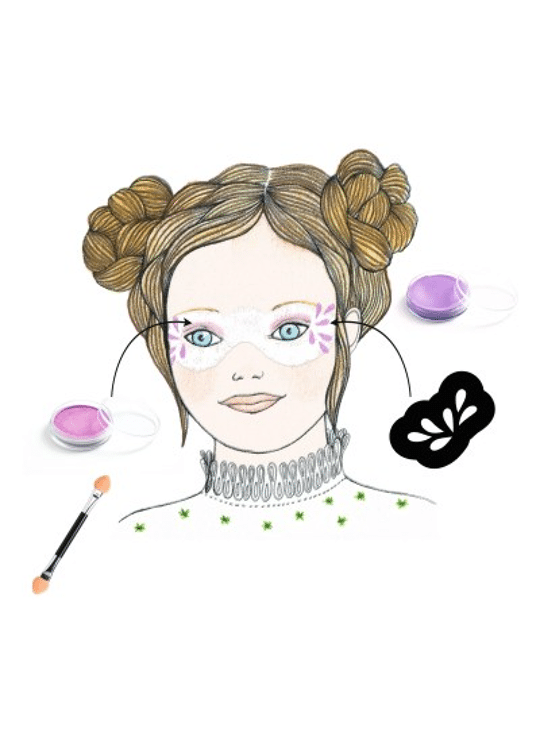1 schmink van vlinder / 1 schmink van fee / 1 schmink van zeemeermin En nog veel meer ideeën! De schmink kan worden verwijderd met water, make-upremover of een vettige substantie (zoals kokosolie). Maak de tools na elk gebruik goed schoon.
