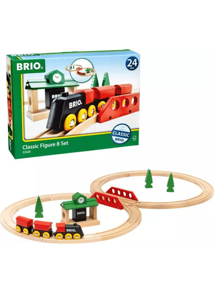 Een klassieke startset voor alle kinderen vanaf 2 jaar, met houten details. Neem de klassieke locomotief mee op avontuur over het spoor. Stop bij het houten station en ga weer verder langs de bomen en over de brug. Veel plezier voor de jongste machinisten!
