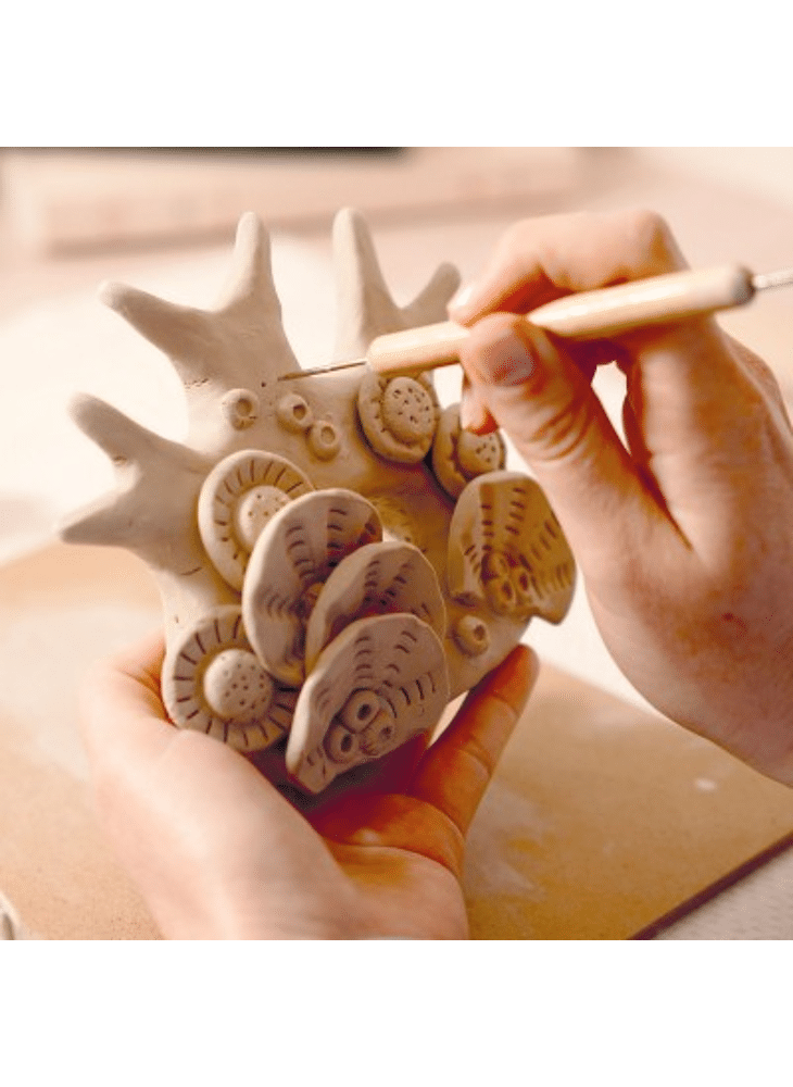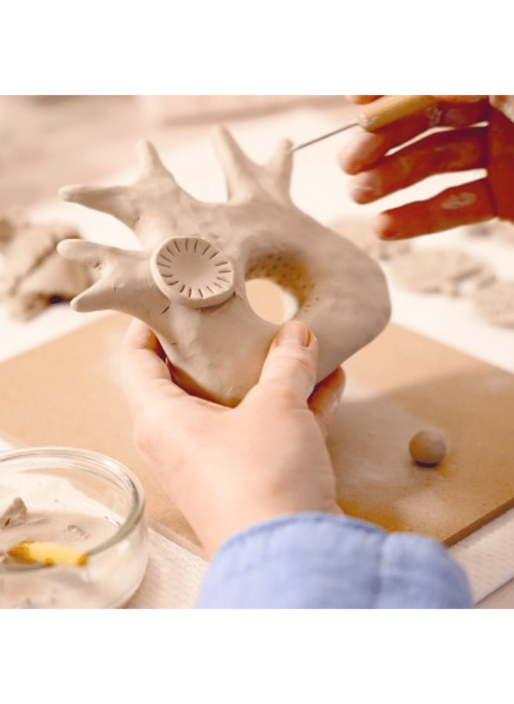 Maak kennis met boetseren, een kunst van materiaal en beweging. Atelier 85 biedt een introductie in het werken met klei. Bij boetseren wordt klei bewerkt met de handen en gereedschappen van professionele beeldhouwers om volumes, texturen en unieke vormen te creëren. Er wordt met echte klei gewerkt: deze laat je aan de lucht drogen, hoeft niet gebakken te worden en kan daarna beschilderd worden. Je leert hoe je een geboetseerd kunstwerk maakt, waarbij je bewegingen, holtes en reliëfs onderzoekt om je koraal vorm te geven. Om je bij elke stap te begeleiden, is er een instructievideo beschikbaar om de juiste technieken te leren. Je kunt de activiteit helemaal op je eigen manier, thuis en in je eigen tempo ontdekken, voor een geheel nieuwe ontspannende ervaring.