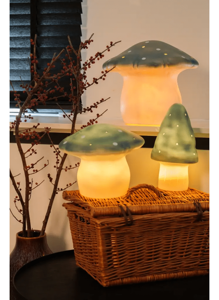 Bring a magical glow to any nursery or kids’ room with this iconic Mushroom Lamp in Natural Teal. Handcrafted with care and painted in rich, enchanting tones, each piece is unique. The warm ambient light create a fairy-tale atmosphere both day and night. Perfect as a nightlight, reading companion or whimsical décor for kids and grown-ups alike.