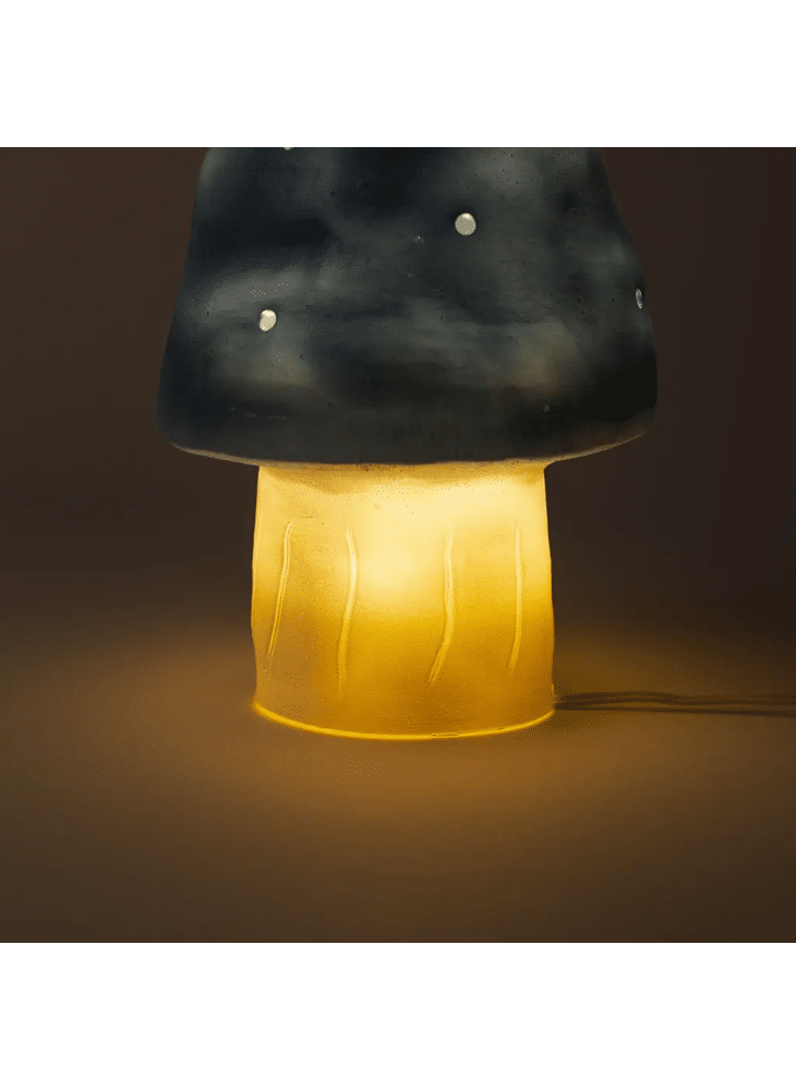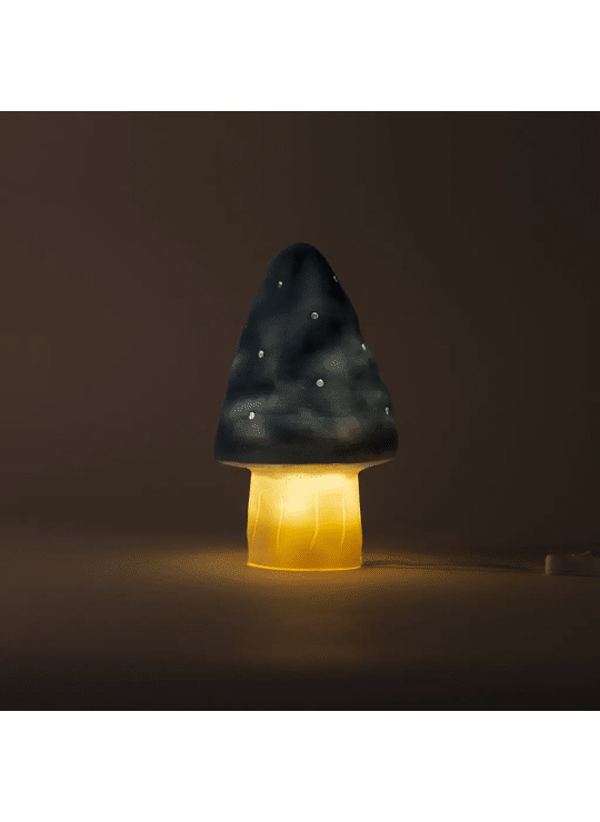 With the night light Small Mushroom Jeans, a whole dream world opens up! The night light gives a very soft and veiled light and will help the little ones to fall asleep without fuss. Lighted or not, the mushroom is always a nice decorative object.Traditionally made For the safety of the kids, supplied with LED system of 1.5 W.