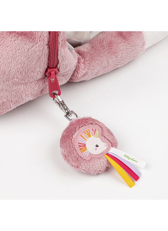 De sleutelhanger voor eenhoornfans! Vanaf de leeftijd van 1 jaar versieren kinderen hun tas, etui of een ander favoriet object in de kleuren van Lena de eenhoorn. Perfect om een vleugje magie aan je sleutels toe te voegen, maar niet alleen, deze zachtroze sleutelhanger is een geweldig cadeau-idee! We houden van het bont (polyester) en de linten van deze roze sleutelhanger. Met zijn praktische metalen clip en zijn formaat van 6 x 12 cm is hij een must-have om de bezittingen van de kleintjes in één oogopslag te herkennen! Lena kan hen dan overal en in stijl vergezellen. Want ja, onze flamboyante eenhoorn maakt zich graag klaar om eropuit te gaan en magie om haar heen te verspreiden: daar gaat niets boven een mooi accessoire in haar beeld! Kinderen vinden het geweldig om hetzelfde te doen en een stijlstatement te maken als ze opgroeien. Dankzij deze mooie lilliputter kunt u de tas voor de crèche of school van uw kind personaliseren naar het beeld van zijn favoriete personage... Of je eigen uitzet, die je alleen voor jezelf houdt!