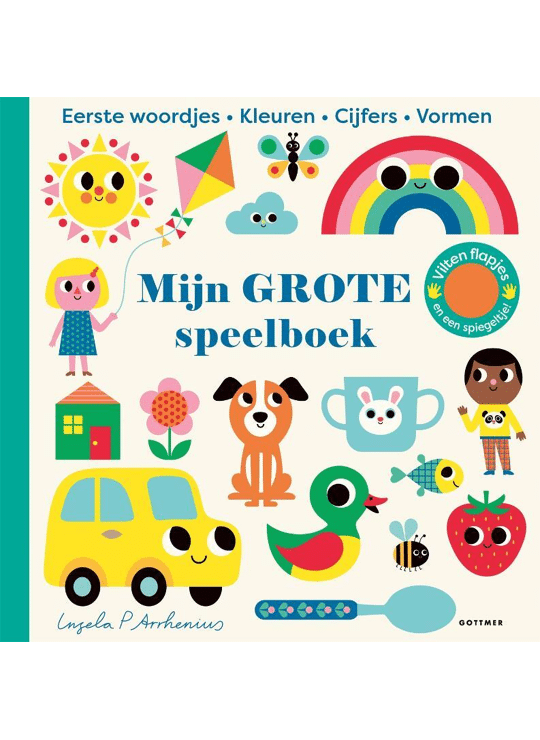 In 'Mijn grote speelboek', een kleurrijk ontdekboek van Ingela, kunnen kinderen naar hartenlust de wonderschone illustraties bekijken en leren ze woordjes, kleuren, cijfers, vormen en nog veel meer. Op elke pagina staat een nieuw concept voorzien van heldere, aantrekkelijke beelden zoals alleen Ingela ze kan maken. Uiteraard zit achter elke zachte vilten flap een verrassing verstopt, en bovendien is iedere spread voorzien van een slim gevonden doorkijkje.Ingela P Arrhenius is de inmiddels welbekende designer en illustrator achter meerdere reeksen voor baby's en dreumesen zoals 'Waar ben je?' en 'Kiekeboe'. Ze maakt van elk schijnbaar eenvoudig boekje een waar feestje van ontdekking en interactiviteit.