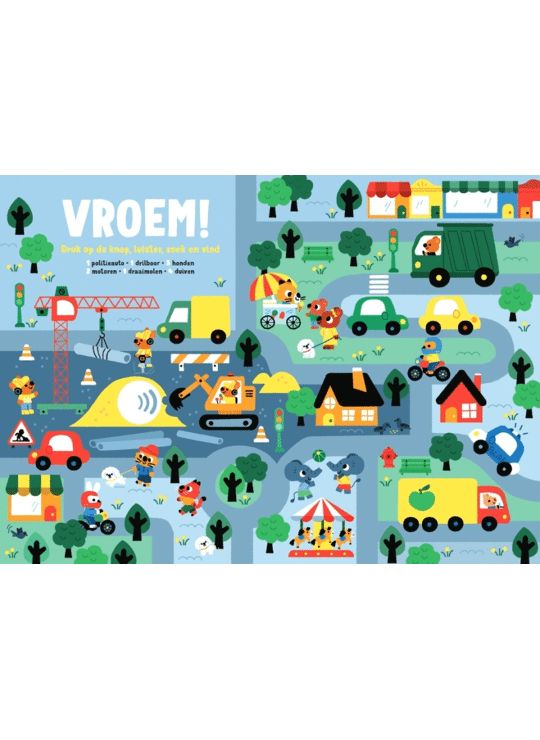 Elke spread bevat een geluidsknop met zes verschillende geluiden en grote, gedetailleerde illustraties vol herkenbare objecten. Kinderen worden uitgedaagd om te raden welk geluid ze horen en vervolgens het bijbehorende voorwerp op de pagina te zoeken. De onvoorspelbare volgorde van de geluiden maakt elk moment een nieuw avontuur. Zo worden de zintuigen geprikkeld, groeit de woordenschat en ontwikkelen kinderen hun concentratie en luistervaardigheid.