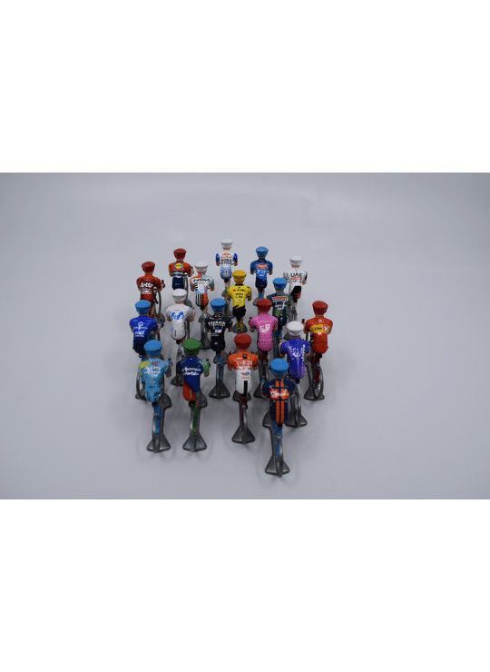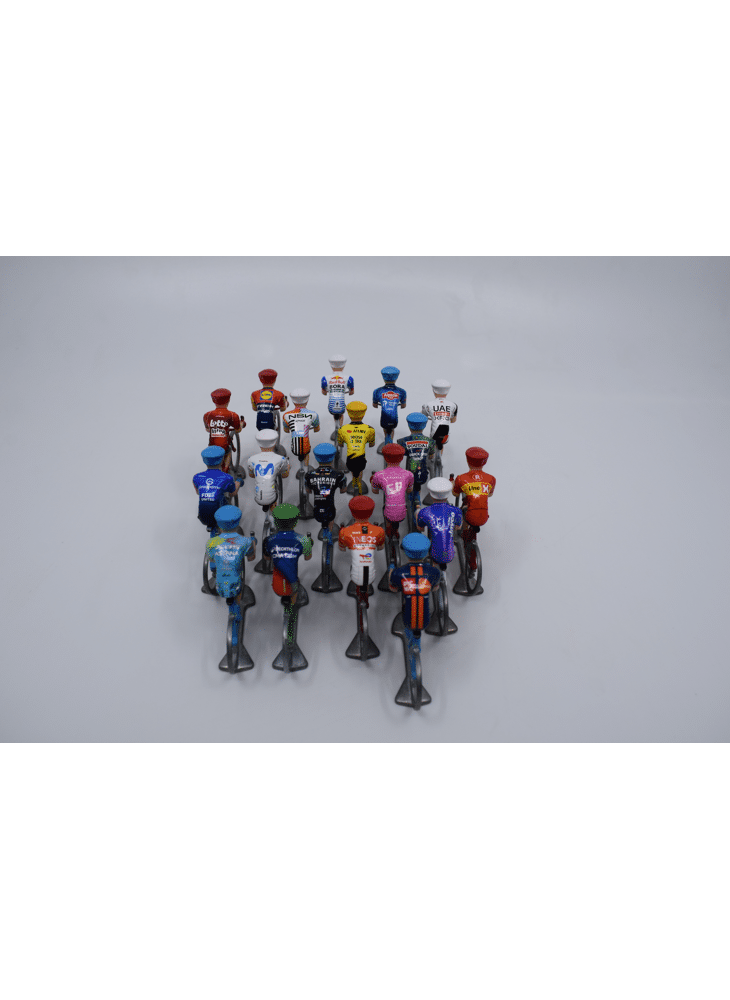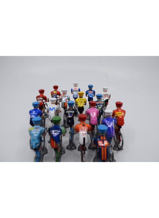Het nieuwe peloton 2026 is er! Deze luxe set bestaat uit 18 miniatuur rennertjes in metaal met gepersonaliseerde truitjes van alle officiële World Teams van 2026.