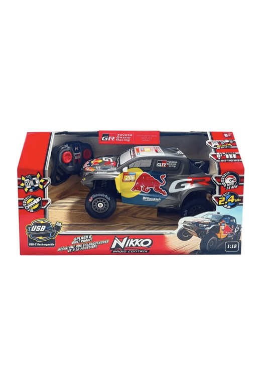 Beleef pure raceactie met de Nikko RC Toyota Gazoo Racing Dakar Pro Truck – 1:12 schaal!Deze krachtige offroad truck is geïnspireerd op de legendarische Toyota Gazoo Racing Dakar-rally en biedt indrukwekkende prestaties op elk terrein. Met de precisie-afstandsbediening maak je scherpe bochten, versnel je soepel en trotseer je uitdagende parcours – binnen én buiten.De herlaadbare accu zorgt voor langdurig speelplezier, terwijl het robuuste en realistische design de Dakar-sfeer tot leven brengt. Ideaal voor jonge avonturiers en RC-fans die houden van snelheid, techniek en actie!