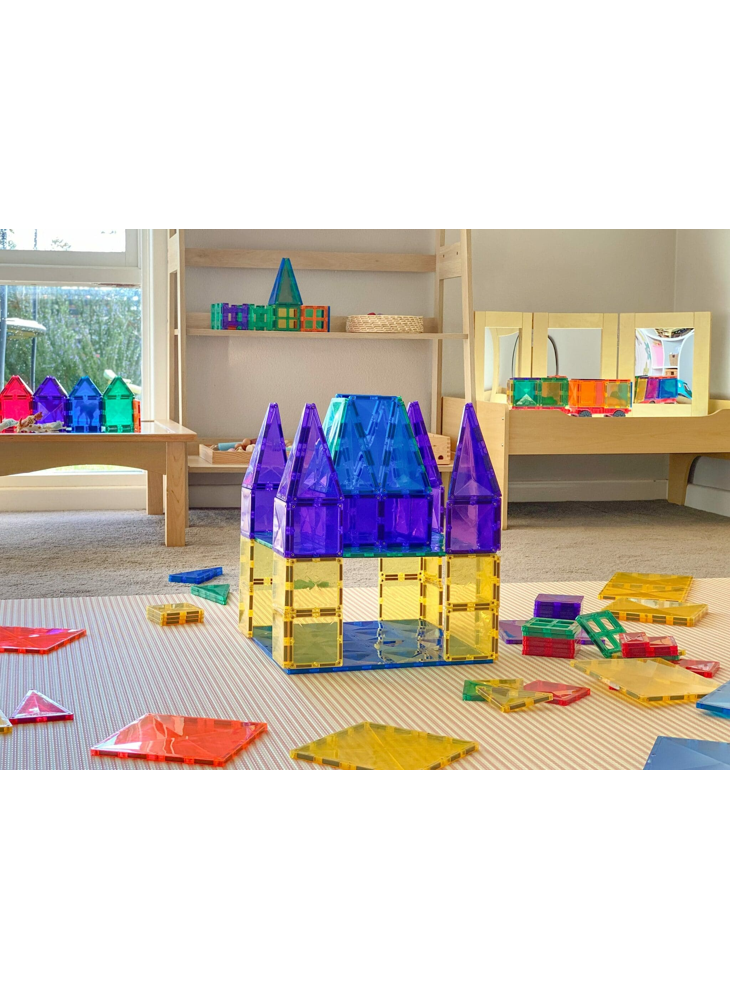 Fostering creativity, imagination and learning through PLAY, this pack provides endless possibilities. As a large building plate with numerous magnet points, Base Plates expand the creative potential of magnetic tile play – supporting the creation of taller towers, sturdier castles and dollhouses, inspiring various forms of play such as fine motor skills and magnetism exploration (attaching tiles to each magnet point), symbolic play (creating ice cream/market stands, tables and chairs for tea parties), small world play (assigning the tiles as grass, ocean or sky) and mazes, just to name a few.