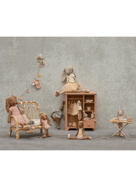The perfect spot to relax for a moment. This bench made of rattan is sutaible for bunnies/rabbits size 3 and all your other small friends. It comes with a soft cushion for a comfortable seat. Its made from unbleached rattan why variation occurs.
