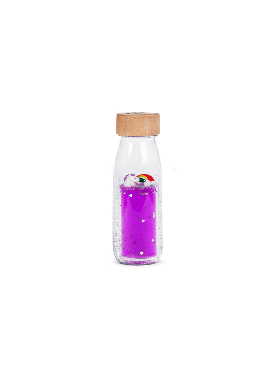 Kijk, beweeg en luister! Stimuleer het gehoor. En leer onderscheid te maken tussen verschillende geluiden. Stimuleer het zicht. Stimuleer de tastzin. Geluidsflesjes, een wereld vol geluid en kleur binnen handbereik. Spelideeën: Observeer de elementen in de flesjes. Schud en raad welk geluid bij welk element hoort. Stapel de flesjes op elkaar. Rol de flesjes over de grond.