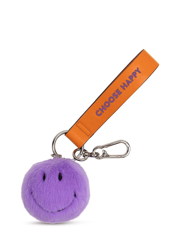 - Product: Sleutelhanger Smiley ECO Fuzzy Bag Charm Paars - 7 cm