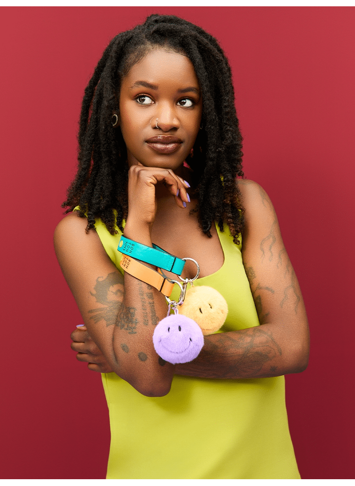Smiley sleutelhanger in zachte fluffy uitvoering.