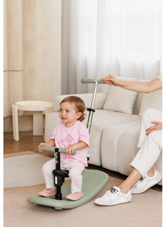 Ride-on - step met zitje en duwstang. Perfect voor de eerste ritjes buiten. De duwstang maakt sturen en voortbewegen eenvoudig, terwijl je kind veilig en comfortabel meereist.