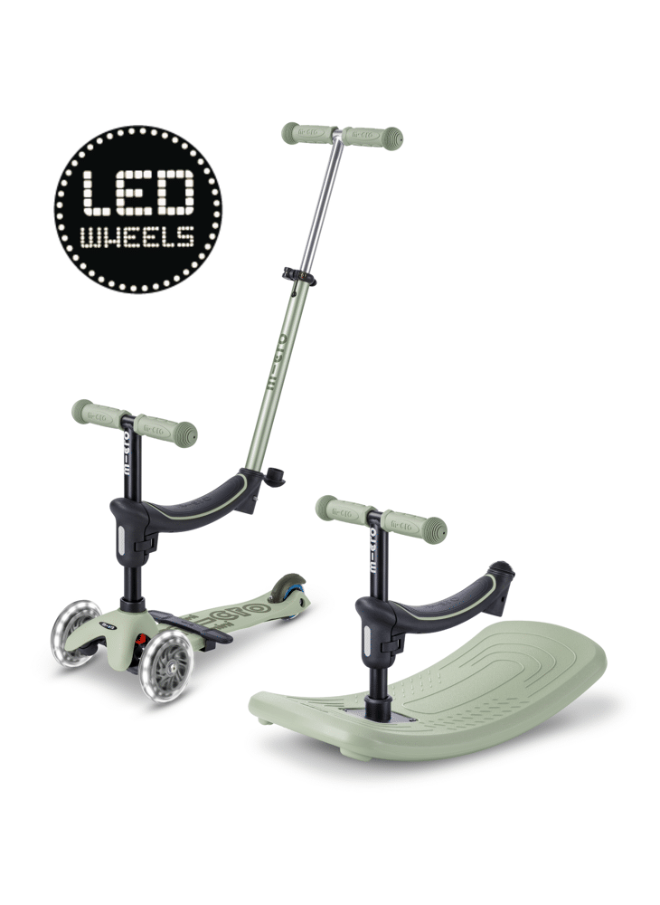 Met de lichtgewicht Mini Micro Deluxe Rock & Go LED kies je voor een unieke 6-in-1 step die ook kan hobbelen. Deze slimme, veelzijdige step verandert gemakkelijk met 2 klikken van een veilige hobbelstep (met of zonder duwstang) naar een ride-on of driewieler.