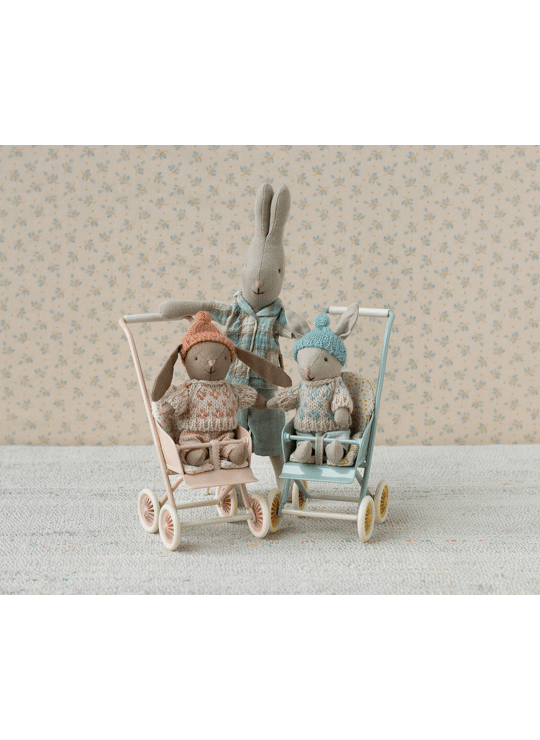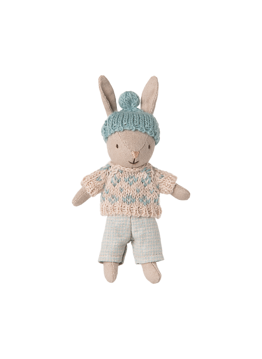 Let the storytelling and hours of play begin with this soft rabbit. It fits Maileg accessories in size micro perfectly and can live in the House of miniature dollhouse. This rabbit size is also perfect on the go so you can bring the magic everyhwere