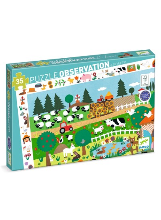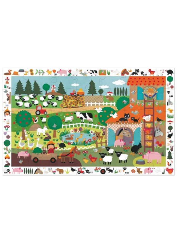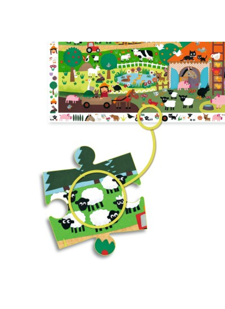 Een 35-delige observatiepuzzel waarin kinderen de boerderijdieren en het leven op de boerderij ontdekken. Je kind maakt een puzzel en zoekt met plezier naar de elementen van de strook in de afbeelding.